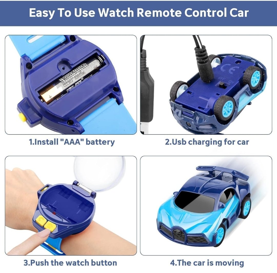 A watch car toy is a fun and creative toy designed like a wristwatch that can transform into a small toy car. Kids can wear it on their wrist like a watch and, with a simple press or flip, the watch opens or transforms into a mini car. It is usually made of durable plastic and comes in bright colors and cool designs that attract children.